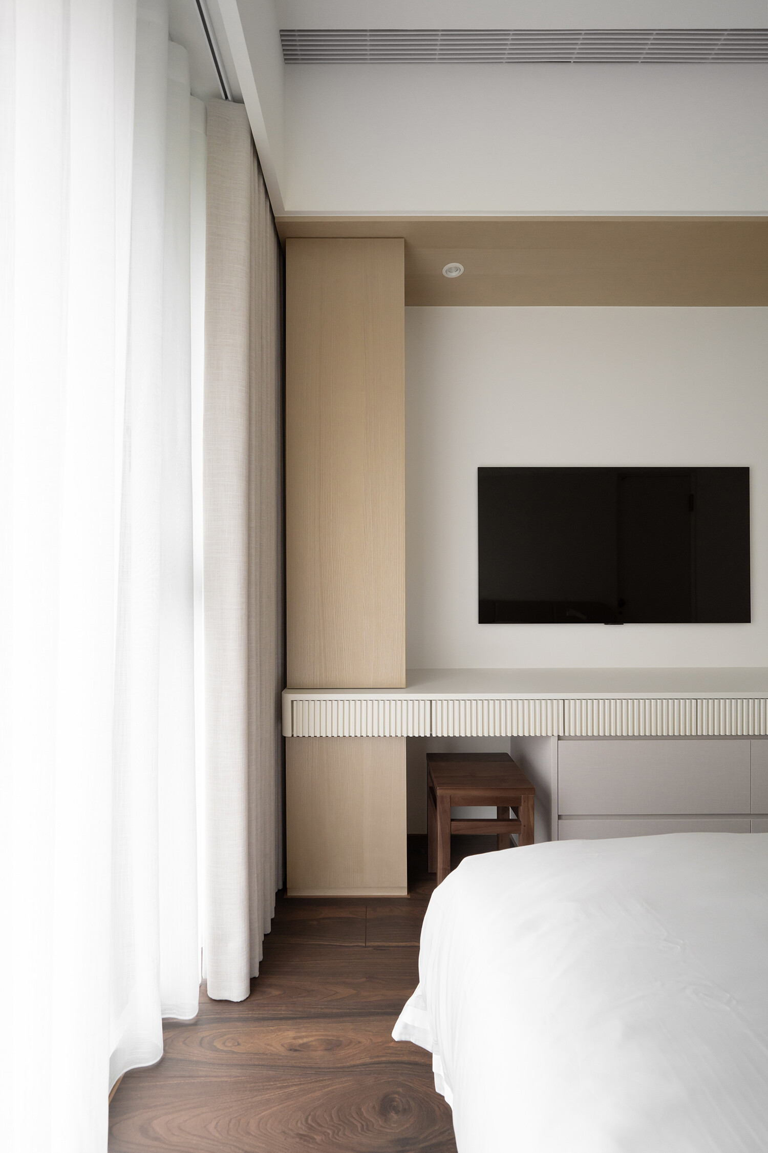 塗料細緻的肌理,賦予牆面石質般的靜謐感。