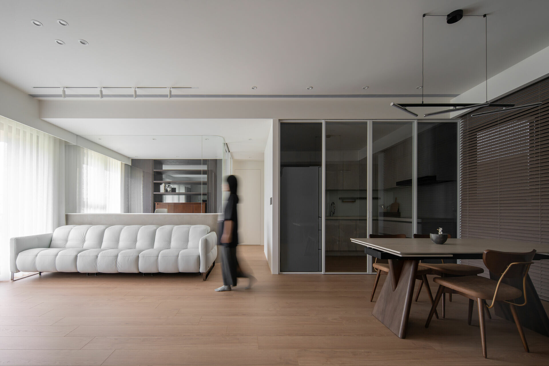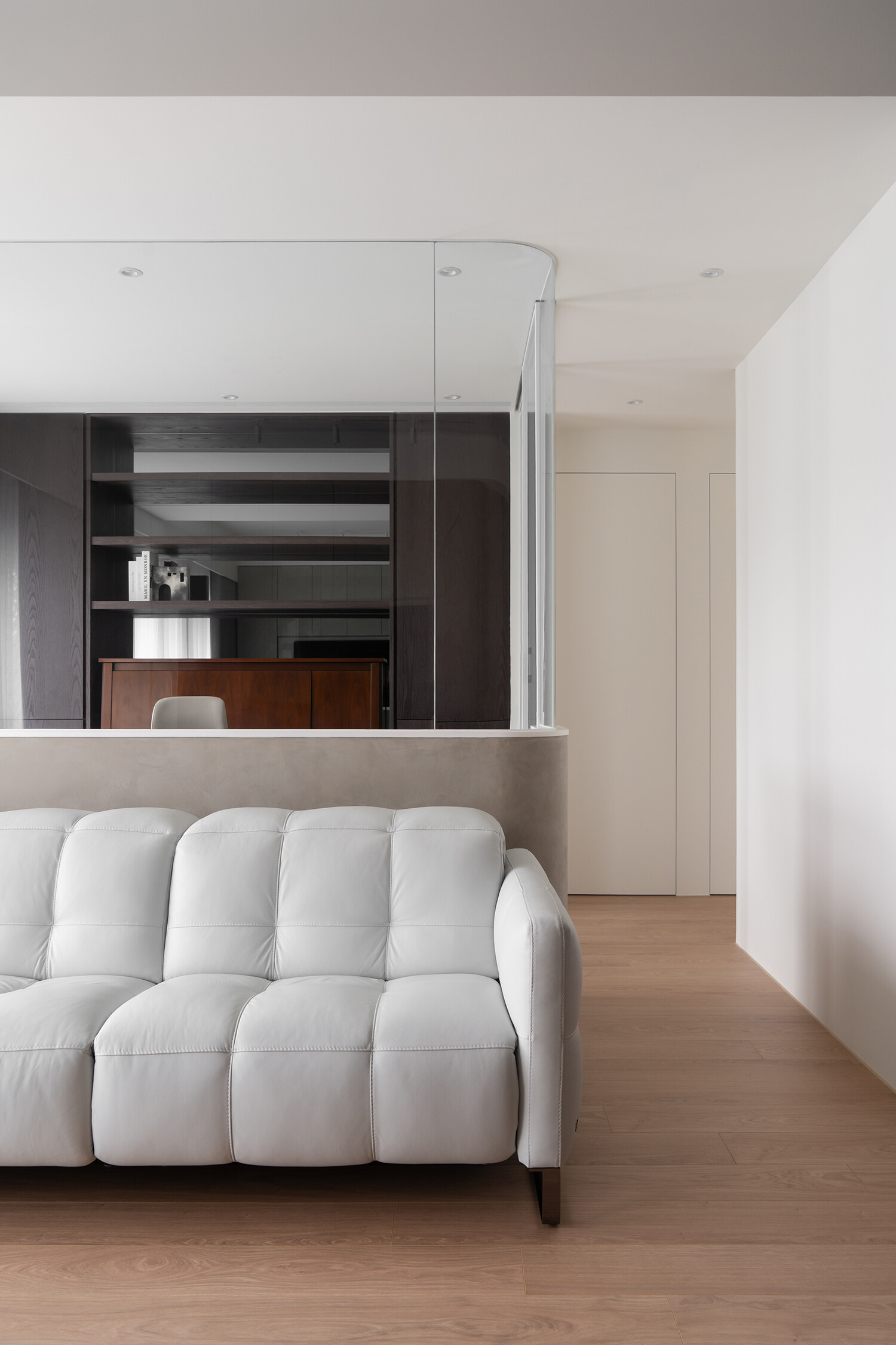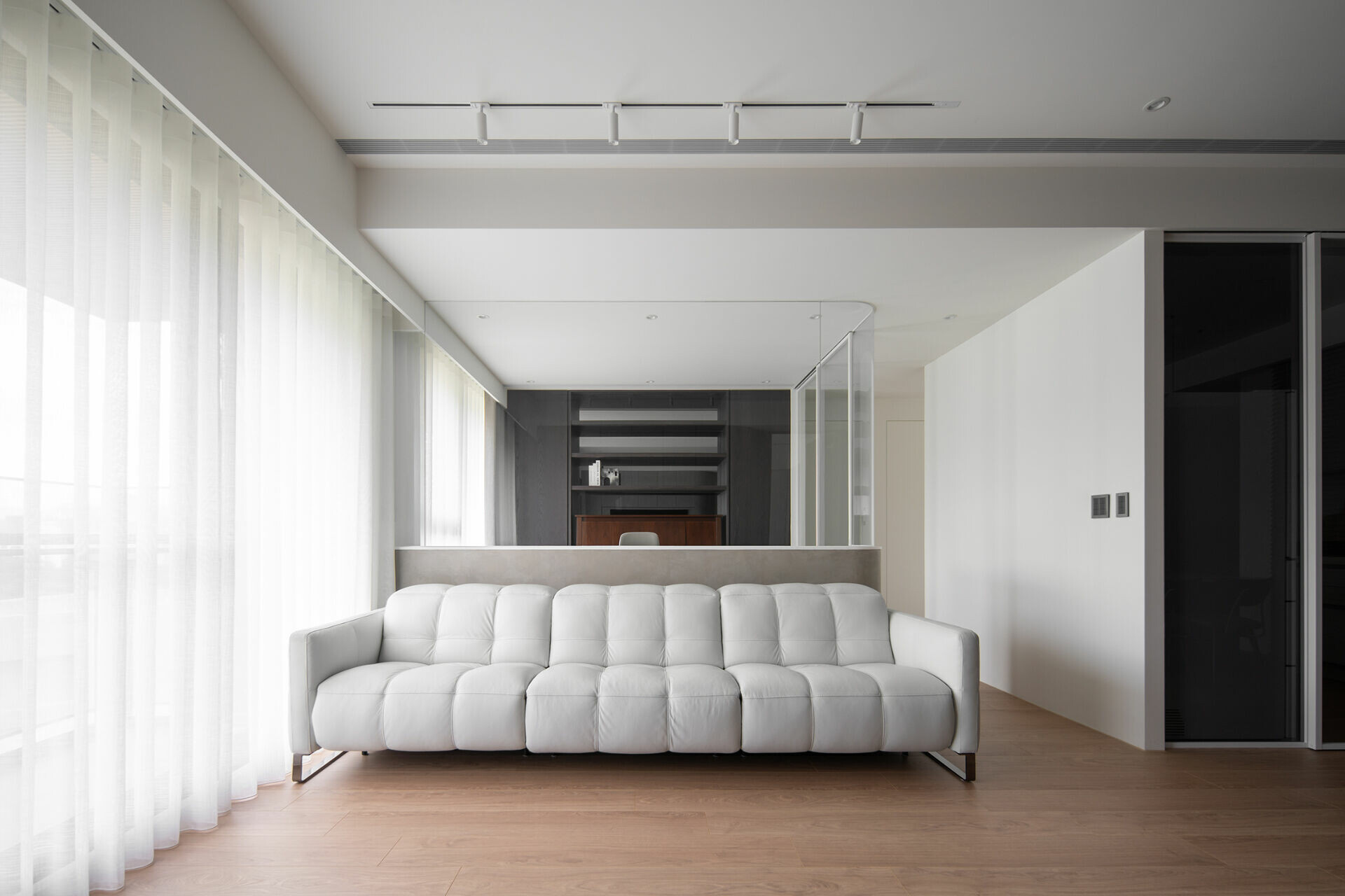 白色沙發宛如雲霧輕盈,成為空間裡的呼吸點。